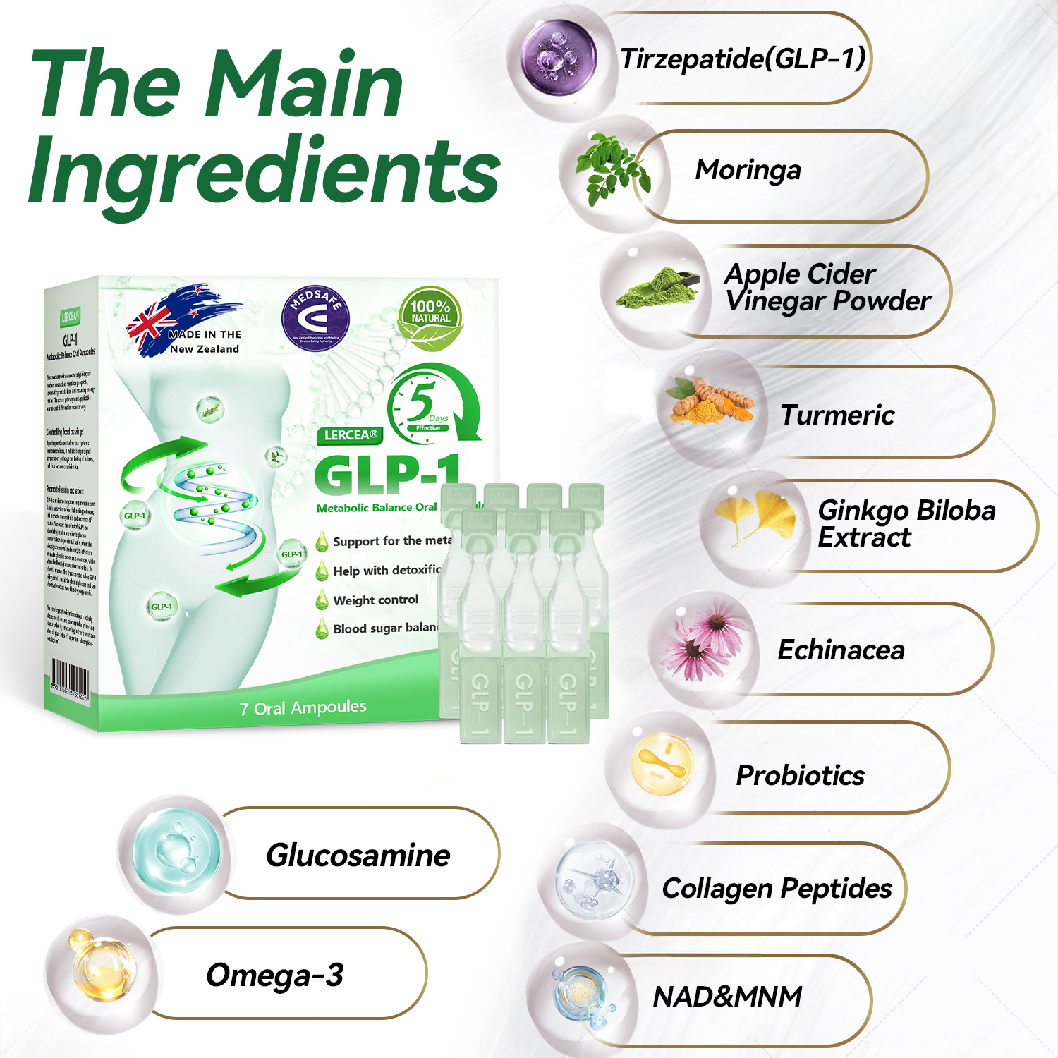 GLP-1 SIX-IN-ONE Health Solution Oral Liquid was developed by a team of over 30 experts in international endocrinology and diabetology after more than 3 years of research. It combines Tirzepatide with powerful herbal ingredients to boost metabolism, accelerate fat burning, and support digestive and lymphatic health. This oral solution has been approved by the New Zealand Food and Drug Administration (TGA) for its safety and efficacy, offering a scientifically backed solution for weight loss and overall wellness.